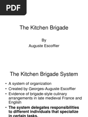 The latest Tweets from Brigade De Cuisine. Much of Escoffiers technique was based onthat of Marie-Antoine Carême. Le Terme Brigade De Cuisine pdf.